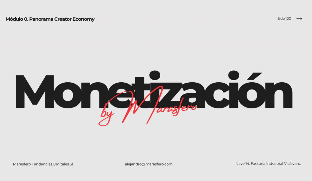 En enero de 2026 lanzar é mi curso definitivo sobre Creator Economy, un programa completo diseñado para ayudar a creadores a monetizar al máximo su comunidad. Incluye 100 vídeos formativos, 8 entrevistas exclusivas con creadores referentes y 2 sesiones one-to-one conmigo, centradas en estrategia, análisis y oportunidades reales. Es una formación práctica, orientada a resultados y pensada para que cualquier creador pueda transformar su audiencia en un proyecto sostenible y escalable.